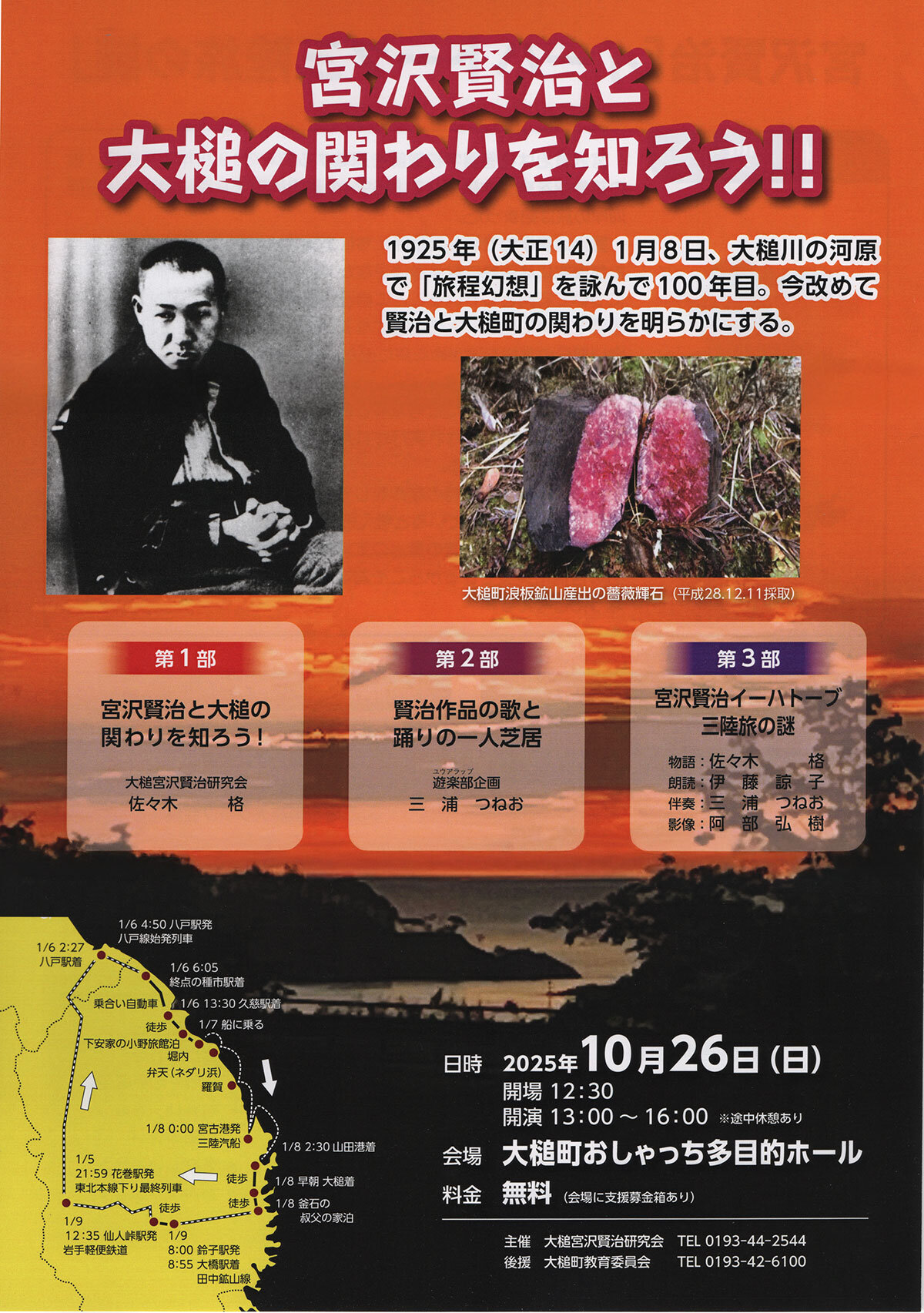 来週10月26日(日)に岩手県大槌町で、「宮沢賢治三陸旅の謎 in 大槌」というイベントが開催されます。